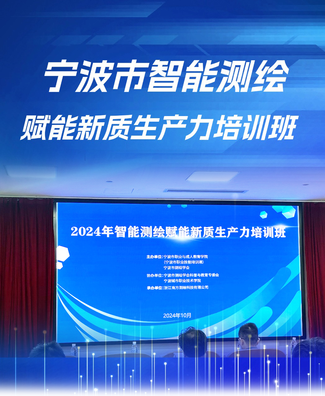 發(fā)布日期:2024.10.31 近日,由寧波市測繪學會、寧波市職業(yè)技能培訓港主辦的智能測繪賦能新質(zhì)生產(chǎn)力培訓班于寧波城市職業(yè)技術學院順利舉行。百余位寧波市測繪企業(yè)崗位從業(yè)人員匯聚一... -