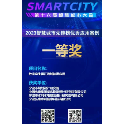 發(fā)布日期:2023.10.16 近日,我院與寧波市規(guī)劃設計研究院、華東勘測設計研究院有限公司、寧波弘泰水利信息科技有限公司共同承擔的“數(shù)字孿生甬江流域防洪應用”項目作為寧波智慧城市創(chuàng)新應用成果,... -