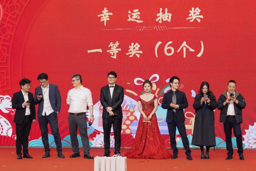 為活躍現(xiàn)場(chǎng)氣氛,增加年會(huì)趣味,文藝節(jié)目之間穿插了8組幸運(yùn)抽獎(jiǎng)活動(dòng),抽取幸運(yùn)獎(jiǎng)、三、二、一等獎(jiǎng)品共計(jì)168份。現(xiàn)場(chǎng)歡呼聲此起起伏,喜氣洋洋,其樂(lè)融融。最后,一等獎(jiǎng)揭曉,獲得華為手機(jī)大獎(jiǎng)的6位同事紛紛獻(xiàn)上才藝節(jié)目,或歌或舞,將氣氛推向最高潮。