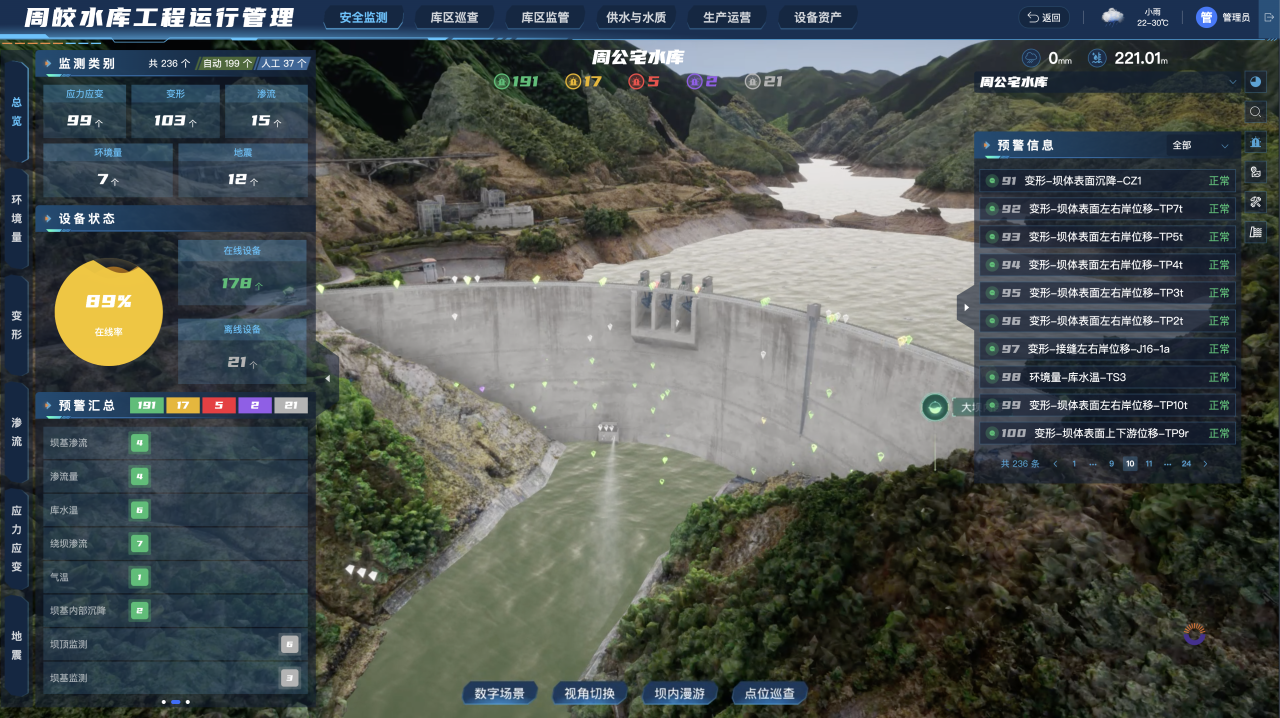 周公宅水庫運行管理矩陣平臺“四管”工作頁面
